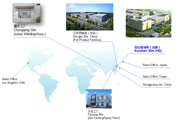 思瑞奕電子有限公司成立于2010年10月,注冊(cè)資金7500萬(wàn)人民幣,總部位于江蘇省昆山市,在重慶、江蘇東臺(tái)、江蘇太倉(cāng)設(shè)有分廠,公司于2011年通過(guò)ISO9001/ISO14001認(rèn)證,2013年通過(guò)高新技術(shù)企業(yè)和TS16949(IATF)體系認(rèn)定,2016年先后通過(guò)知識(shí)產(chǎn)權(quán)管理體系認(rèn)證、安全生產(chǎn)標(biāo)準(zhǔn)化認(rèn)證,2017年獲頒江蘇省民營(yíng)科技企業(yè)、2018年先后獲得蘇州市人民政府認(rèn)定企業(yè)技術(shù)中心、科技部認(rèn)定中小型科技企業(yè)、江蘇省最具成長(zhǎng)性高科技企業(yè)、2020年獲得江蘇省人民政府認(rèn)定企業(yè)技術(shù)中心、2021年獲得蘇州市瞪羚計(jì)劃入庫(kù)企業(yè)、江蘇省省級(jí)工程技術(shù)研究中心、江蘇省專(zhuān)精特新中小企業(yè)等榮譽(yù)稱(chēng)號(hào)......